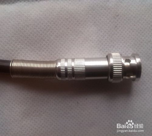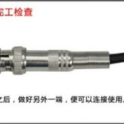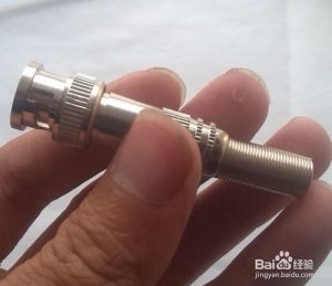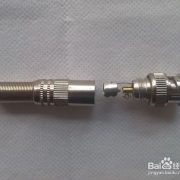 3、裝配BNC 接頭:連接好芯線后,先將屏蔽金屬套筒套入同軸電纜,再將芯線插針從BNC 接頭本體尾部孔中向前插入,使芯線插針從前端向外仲出,最后將金屬套簡前推,使套簡將外層金屬屏蔽線卡在BNC 接頭本體尾部的圓柱體;