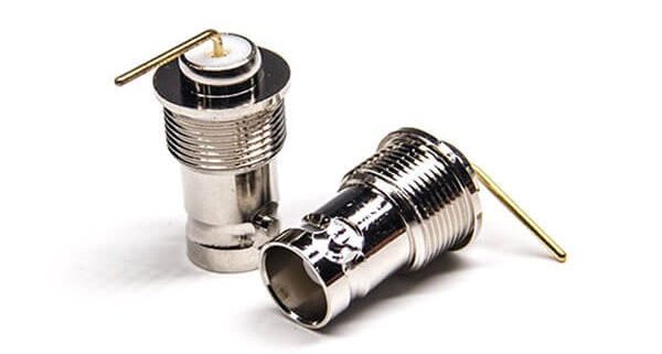 母頭BNC彎式帶針長(zhǎng)螺紋鍍鎳卯壓接PCB板